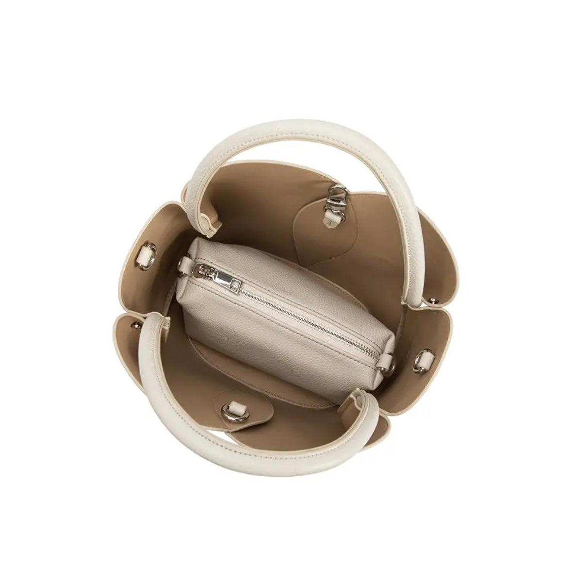 Our Tulip Bag, shaped like a delicate tulip, adds a touch of elegance to any outfit. Featuring a pebble leather texture, it can be used as a top handle or crossbody bag. The removable zip pouch inside also comes with a detachable strap for added functionality.