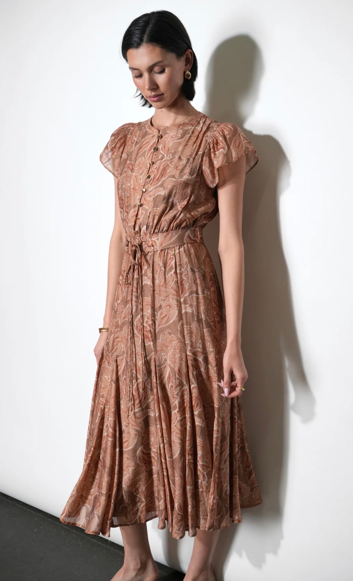 Grace’s earthy tone and adjustable silhouette make it a "chameleon" piece for your social calendar: The terracotta shade is a natural fit for a vineyard setting. Pair it with a tan leather slide and a wide-brimmed hat for a look that is perfectly "Napa-chic." This earthy, clay-inspired hue offers a vibrant yet natural depth that flatters a wide range of skin tones. The design features a midi-length silhouette crafted from a premium woven blend that provides a soft, breathable drape and a subtle, luxurious texture.