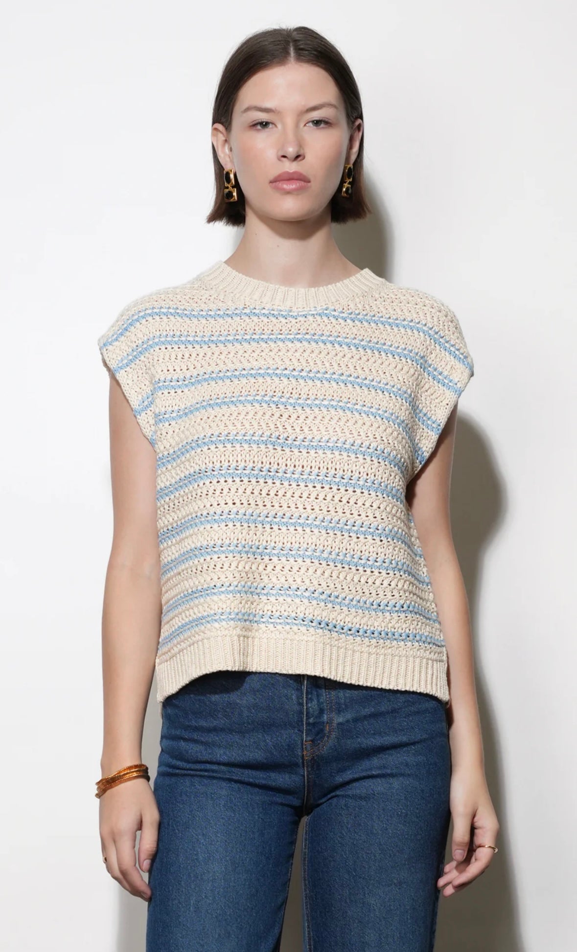 Solana’s "casual-luxe" vibe makes it the ultimate transition piece for polished, everyday wear: Pair it with your favorite high-waisted leggings or relaxed denim. The boxy cut keeps you comfortable while the knit texture ensures you look "put-together." Typically featuring a sophisticated striped or color-blocked pattern, this piece uses the high-contrast duo to create a maritime-inspired look that never goes out of style. The boxy silhouette provides a contemporary, slightly oversized fit that hangs beautifully off the frame without losing its structure.