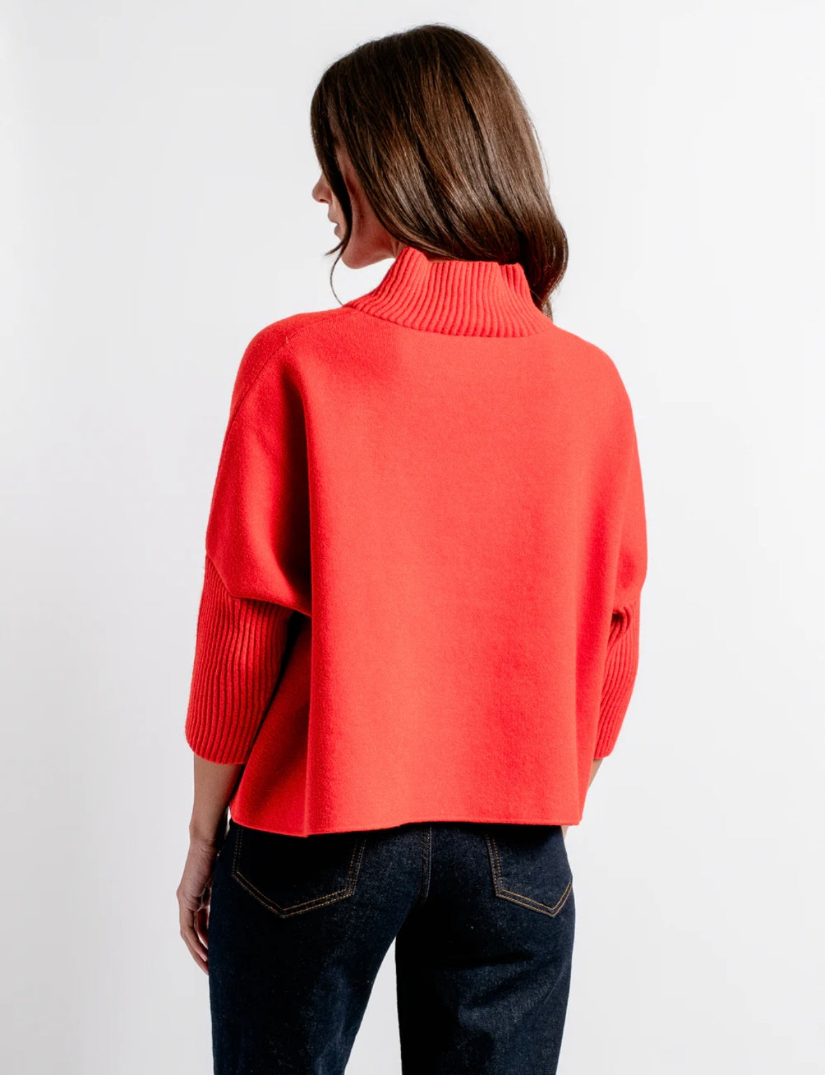 The Aja sweater balances a structured, sharp silhouette with the ease of knitwear. This cropped mock style is a classic with a modern twist. Perfect for pairing with high-waisted jeans, a flowy skirt, or over long dresses.