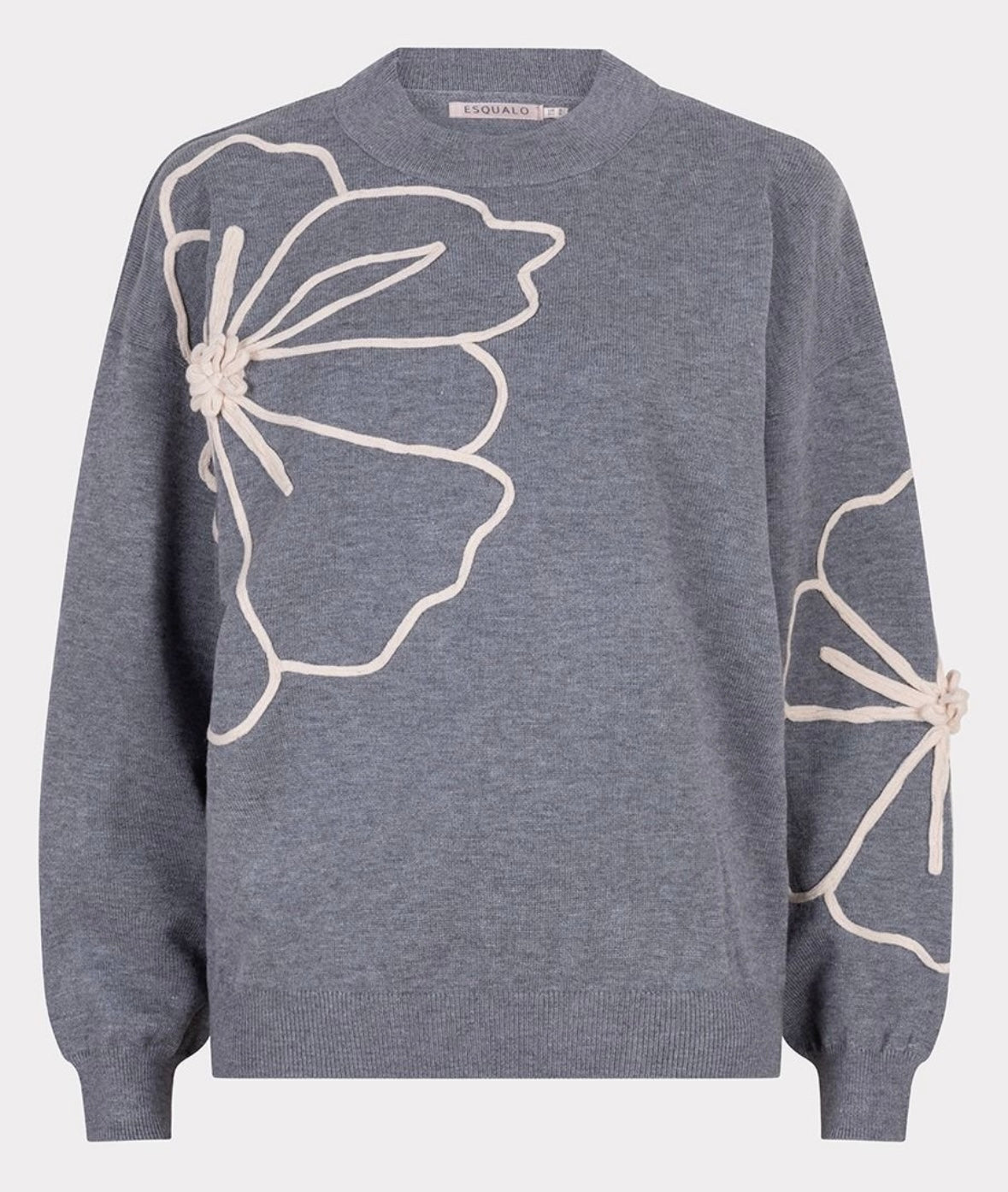 Round neck sweatshirt style sweater with 3D stitched floral design